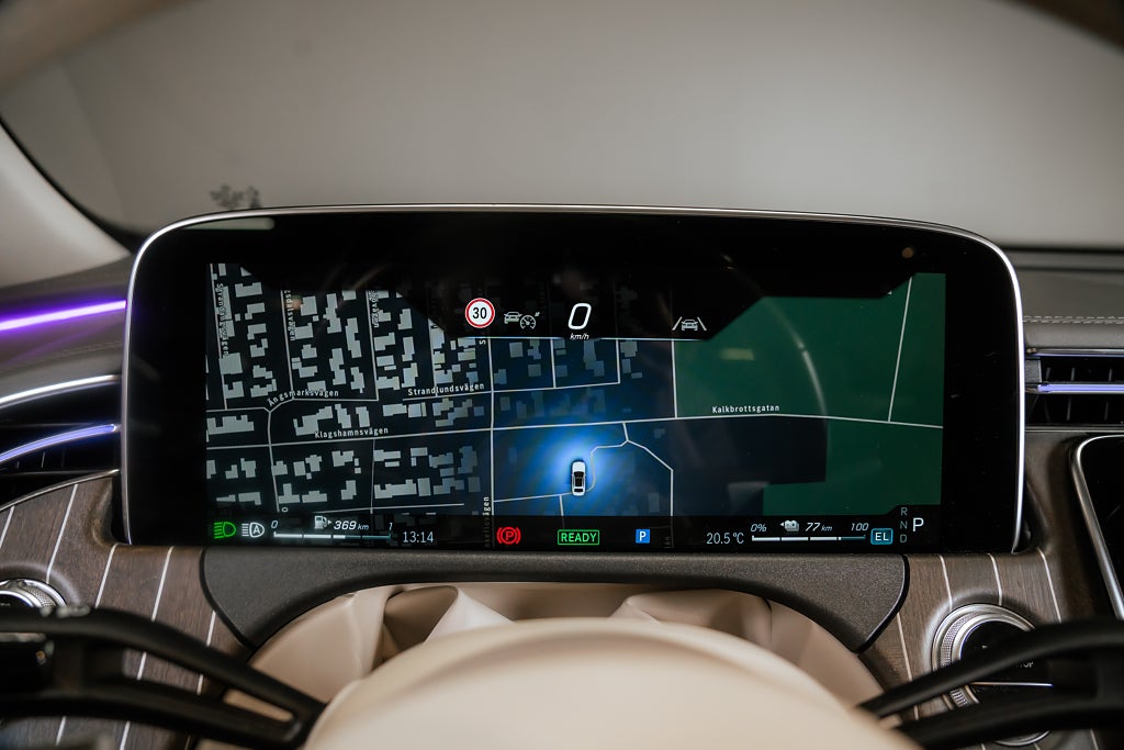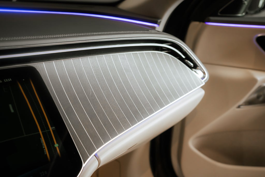 Sammetsbrun Metallic med en helläder interiör i Macchiatobiege samt interiörpaneler i öppenportigt lönn med aluminiumlinjer, -19" lättmetallfälgar i multiekerdeisgn fälg lackerad i tremolitgrå och glanssvarvade